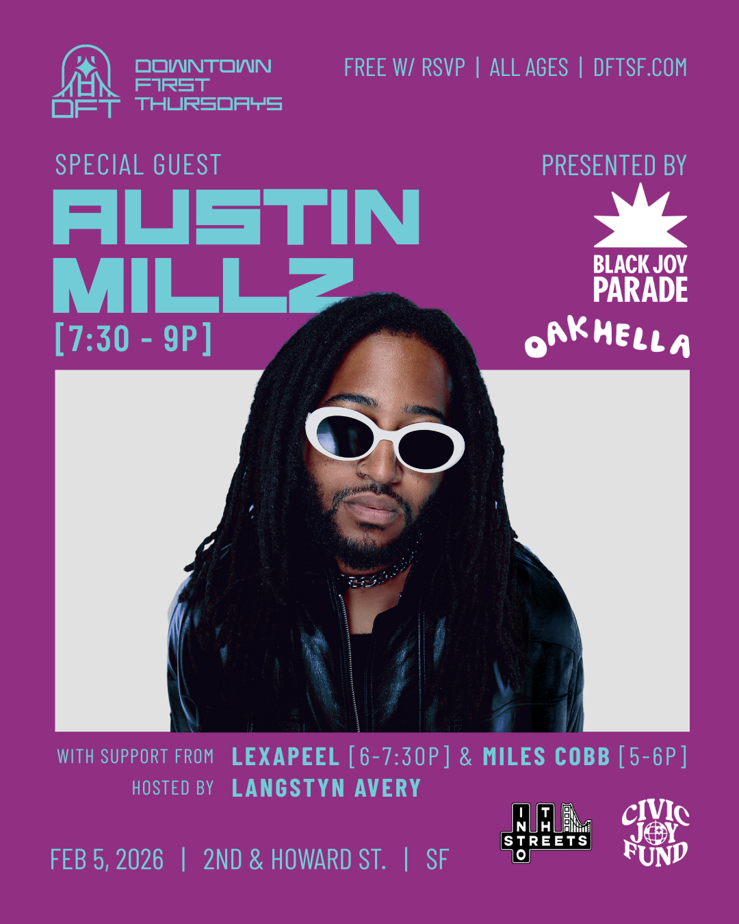 From Harlem to the Bay: special guest @Austinmillz spins a free set for you on Thursday, Feb. 5th at Downtown First Thursdays in SF. It's a Howard Stage takeover presented by @blackjoyparade and @oakhella!
