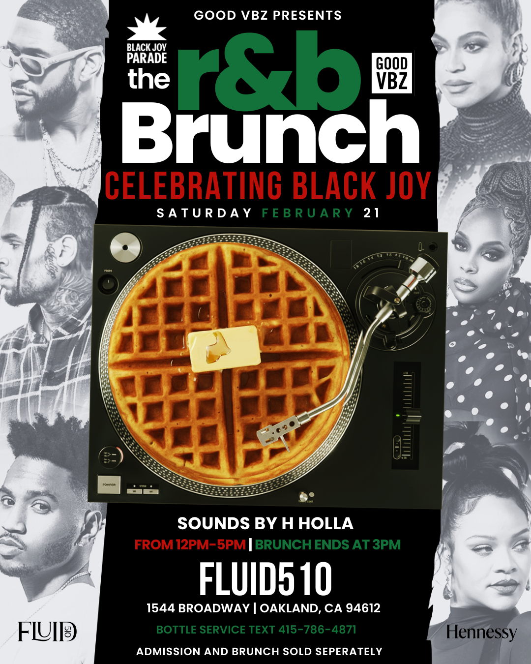 Good VBZ brings Brunch VBZ, an R&B brunch day party celebrating Black joy, music, and community during Black Joy Parade Weekend in Oakland. Join us at Fluid510 on Saturday, February 21 12:00 PM–5:00 PM Featuring DJ H HOLLA, this experience blends good music, good people, and Good VBZ.