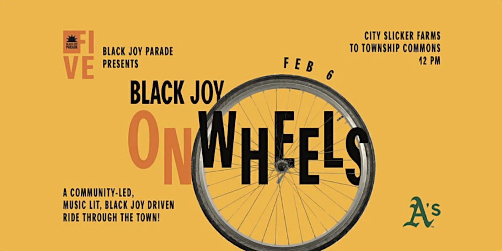 Join Black Joy Parade and your town team Oakland A's for a community-led, music lit, Black joy bike ride.